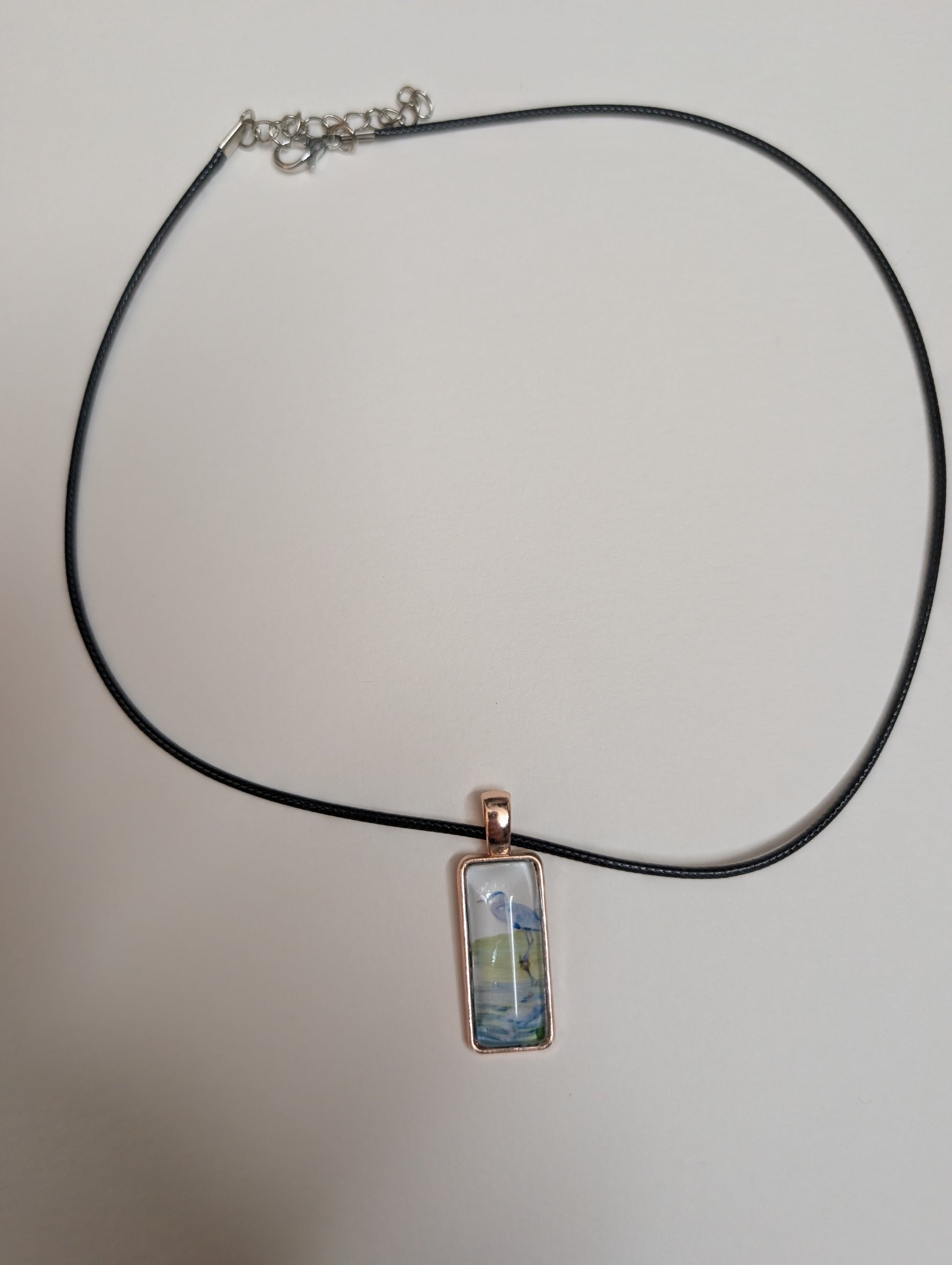 This original painting was painted using watercolor paint on paper. This print version is printed on high quality paper, and is glued into the pendant under a glass dome.