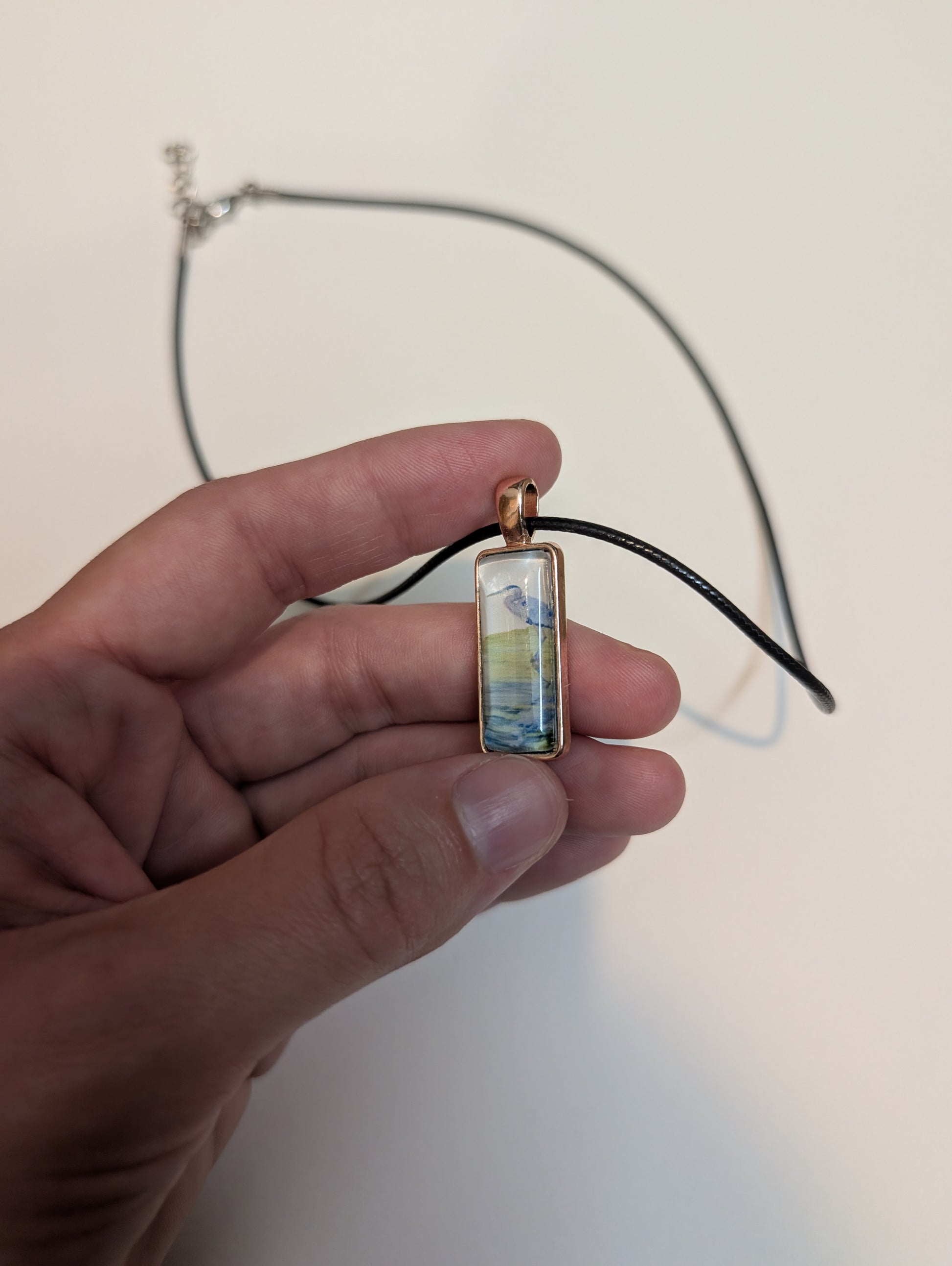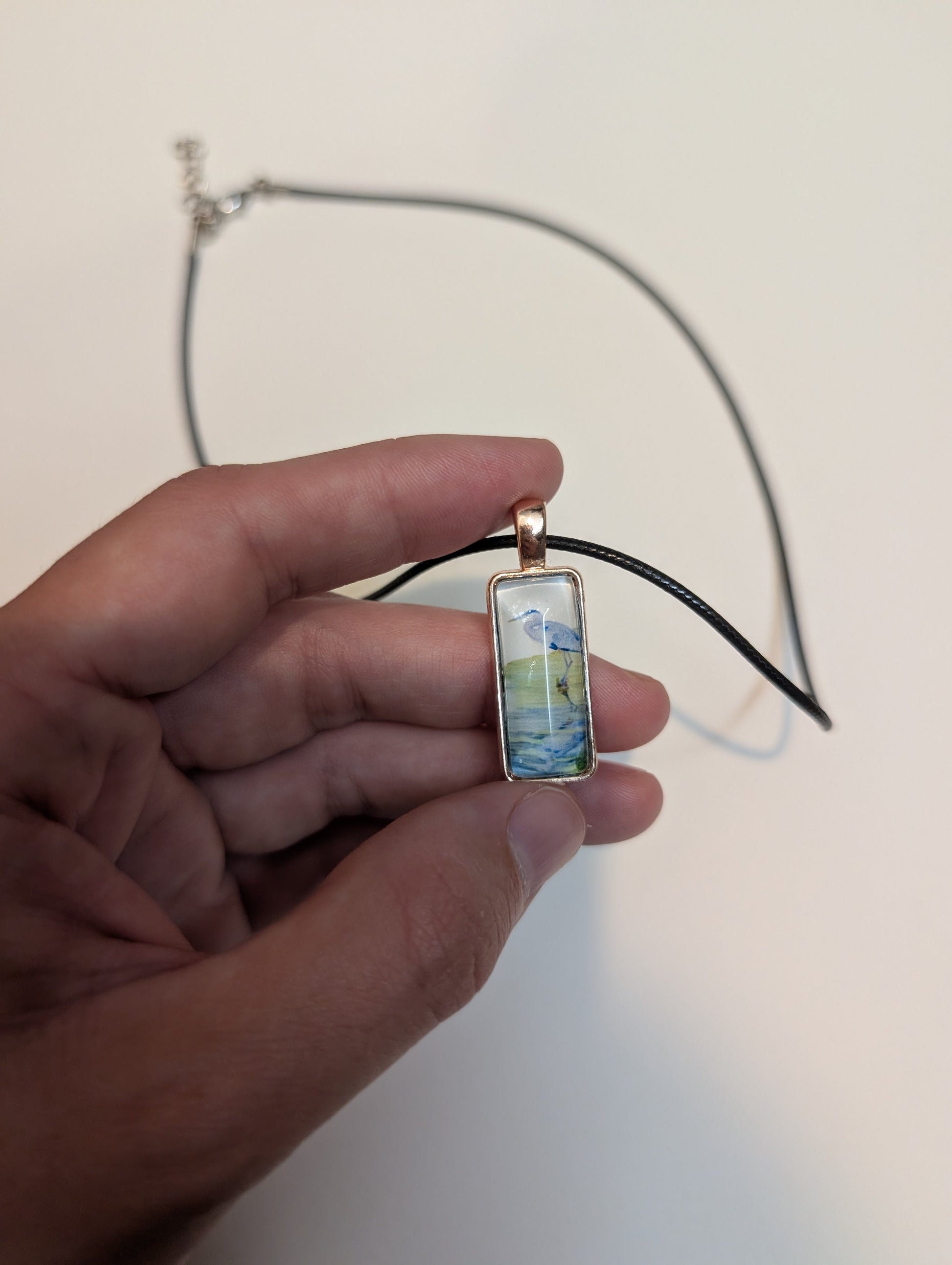 Blue Heron in Creek Pendant Necklace - Lora Cavallin Art
