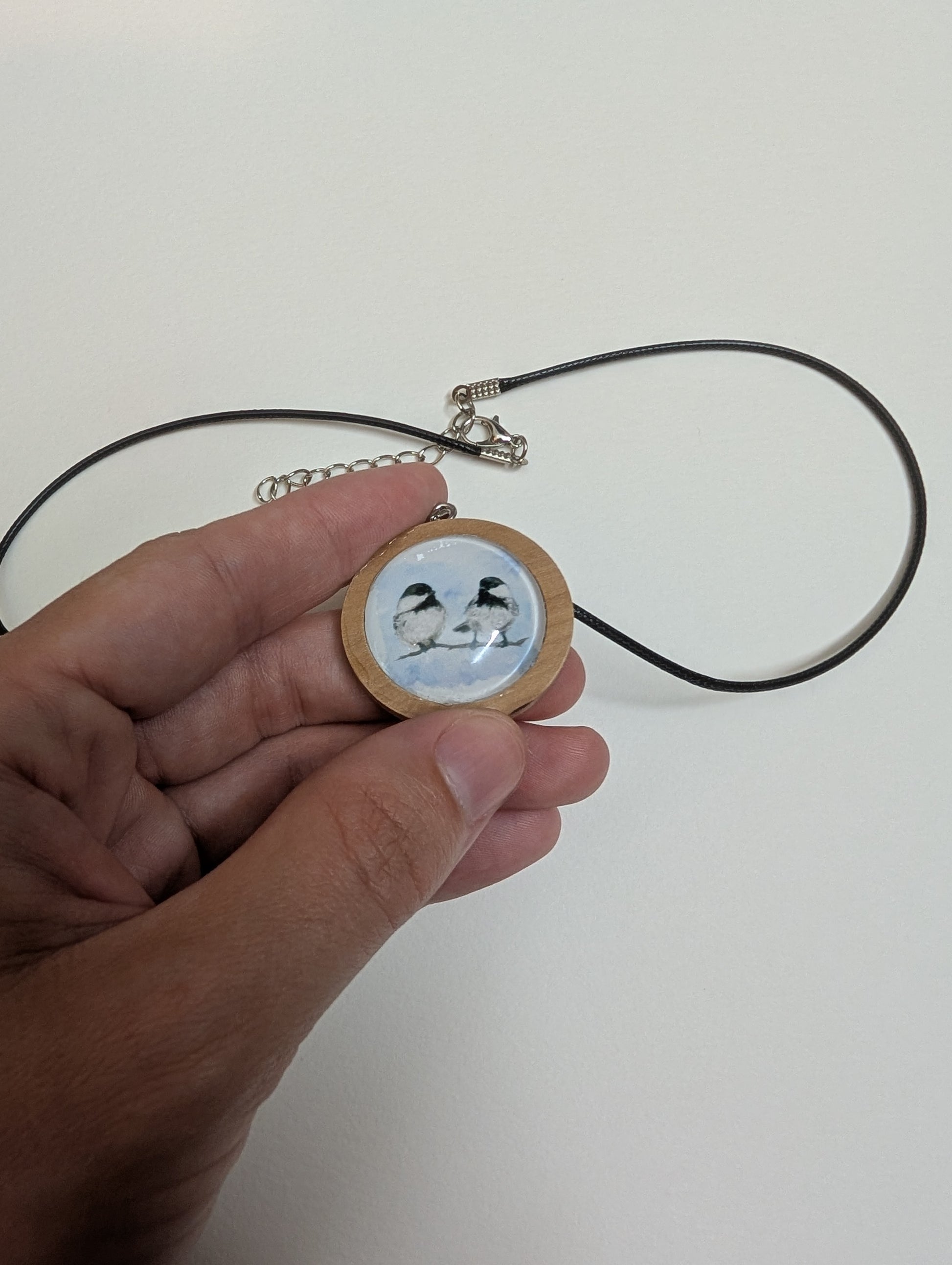 Chickadee Birds Pendant Necklace - Lora Cavallin Art