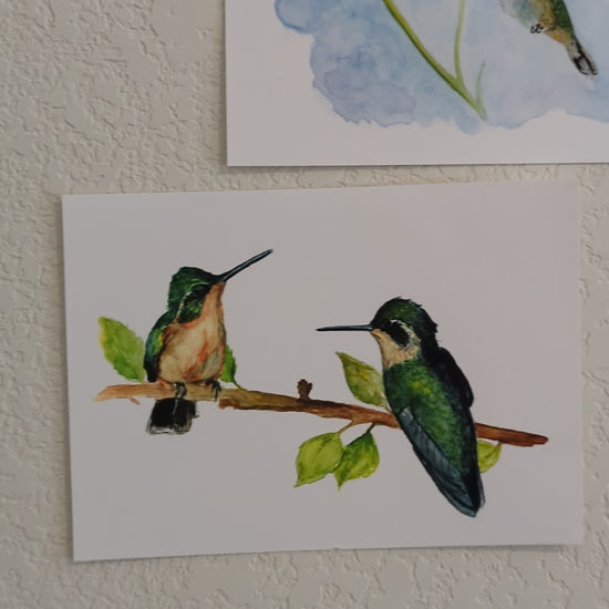 A set of 5 unframed hummingbird art prints based on Lora Cavallin’s watercolor paintings. These are fine art giclée reproductions, perfect for adding a soft, nature-inspired charm to your home—whether it’s a cozy gallery wall, a nursery, or a thoughtful gift.
