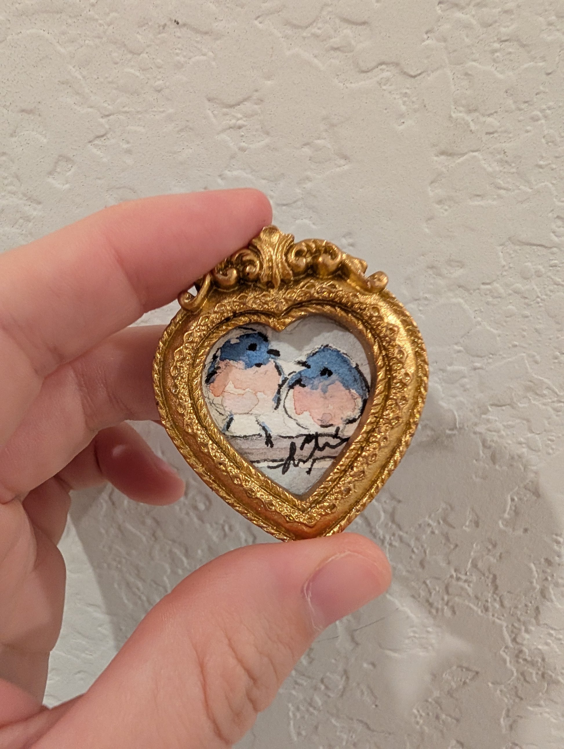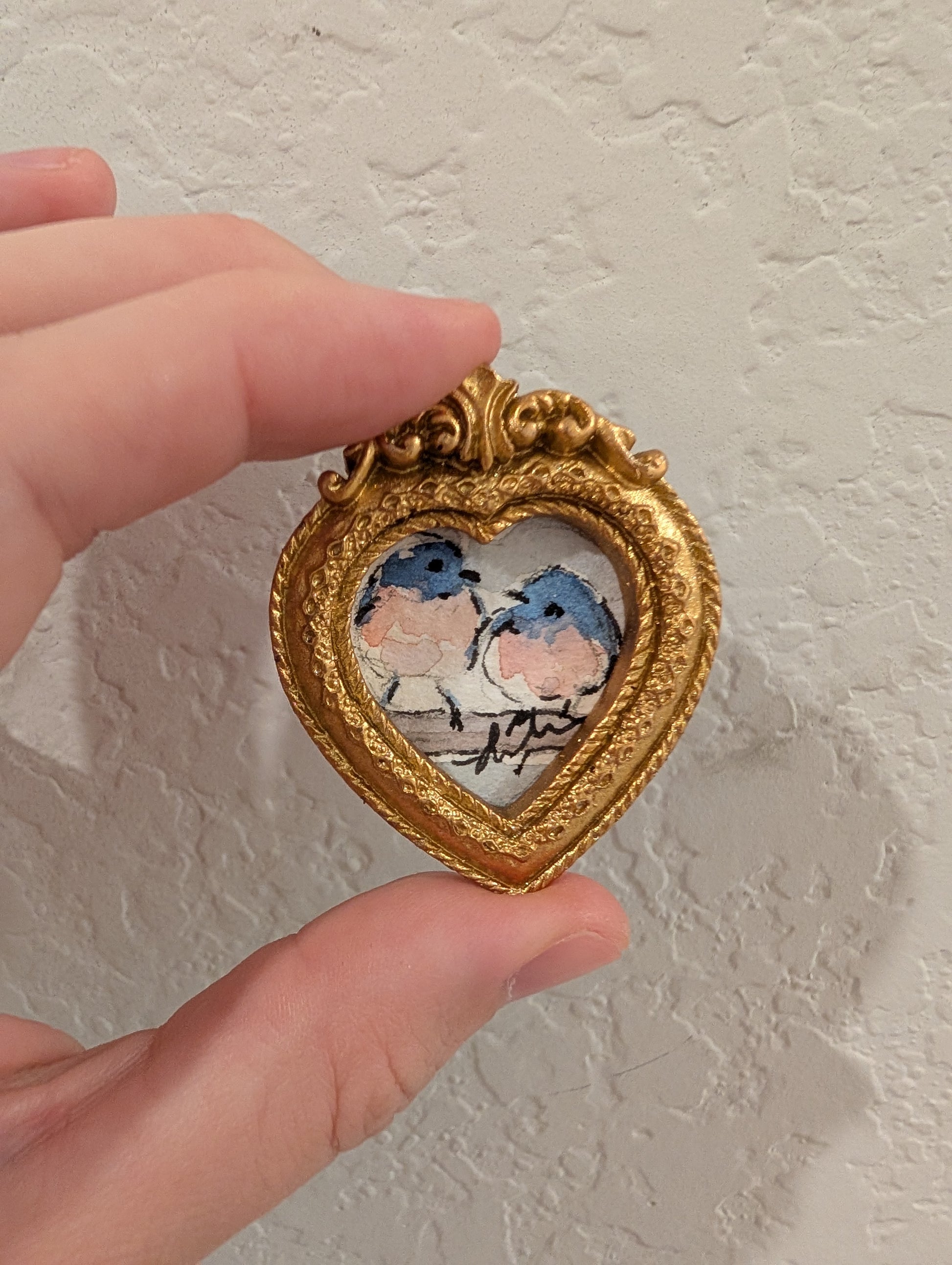 Mini Bluebirds in Love Painting - Original Watercolor Art by Lora Cavallin