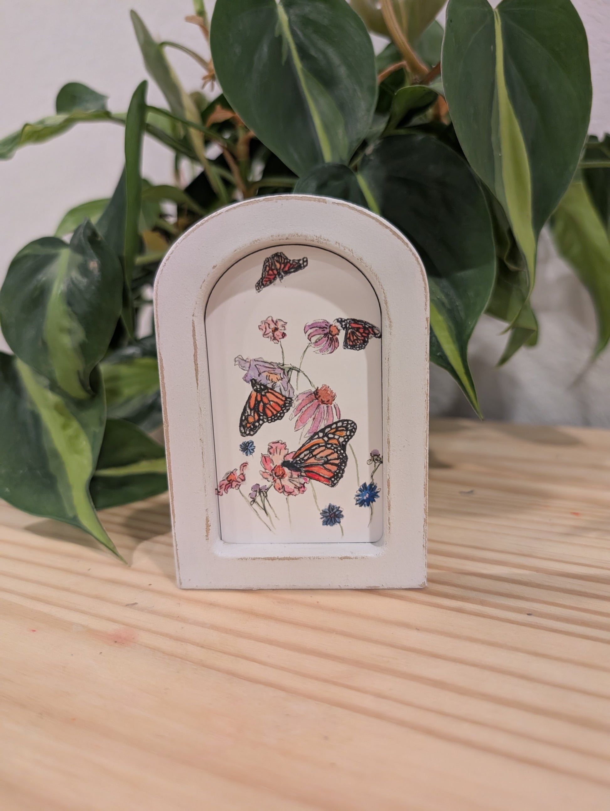 Mini Butterflies and Flowers Print - Wood Arch Frame - Lora Cavallin Art