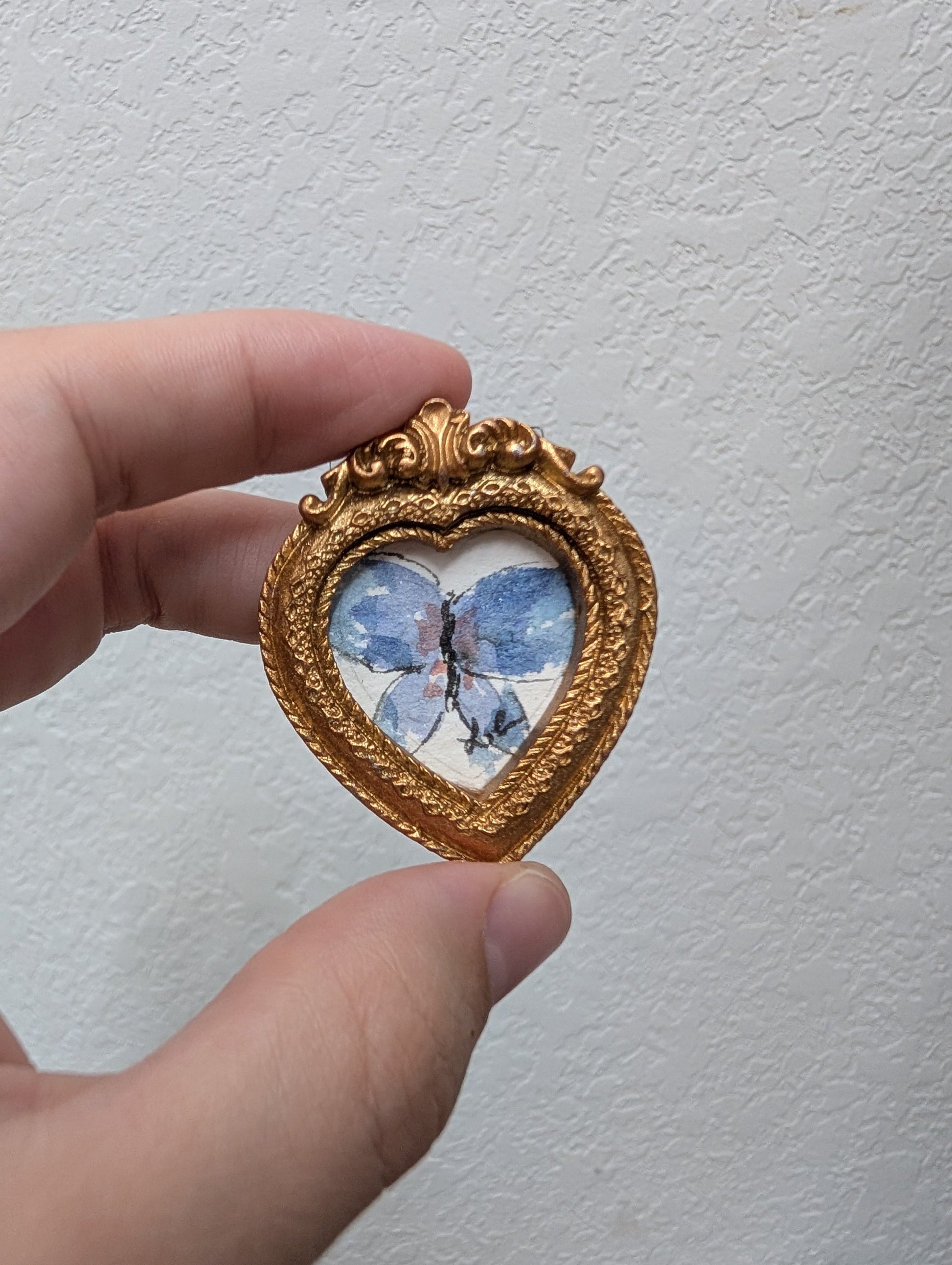 These make great gifts for any miniature enthusiast! It comes in the little gold frame, and has a tag hanger on the back.