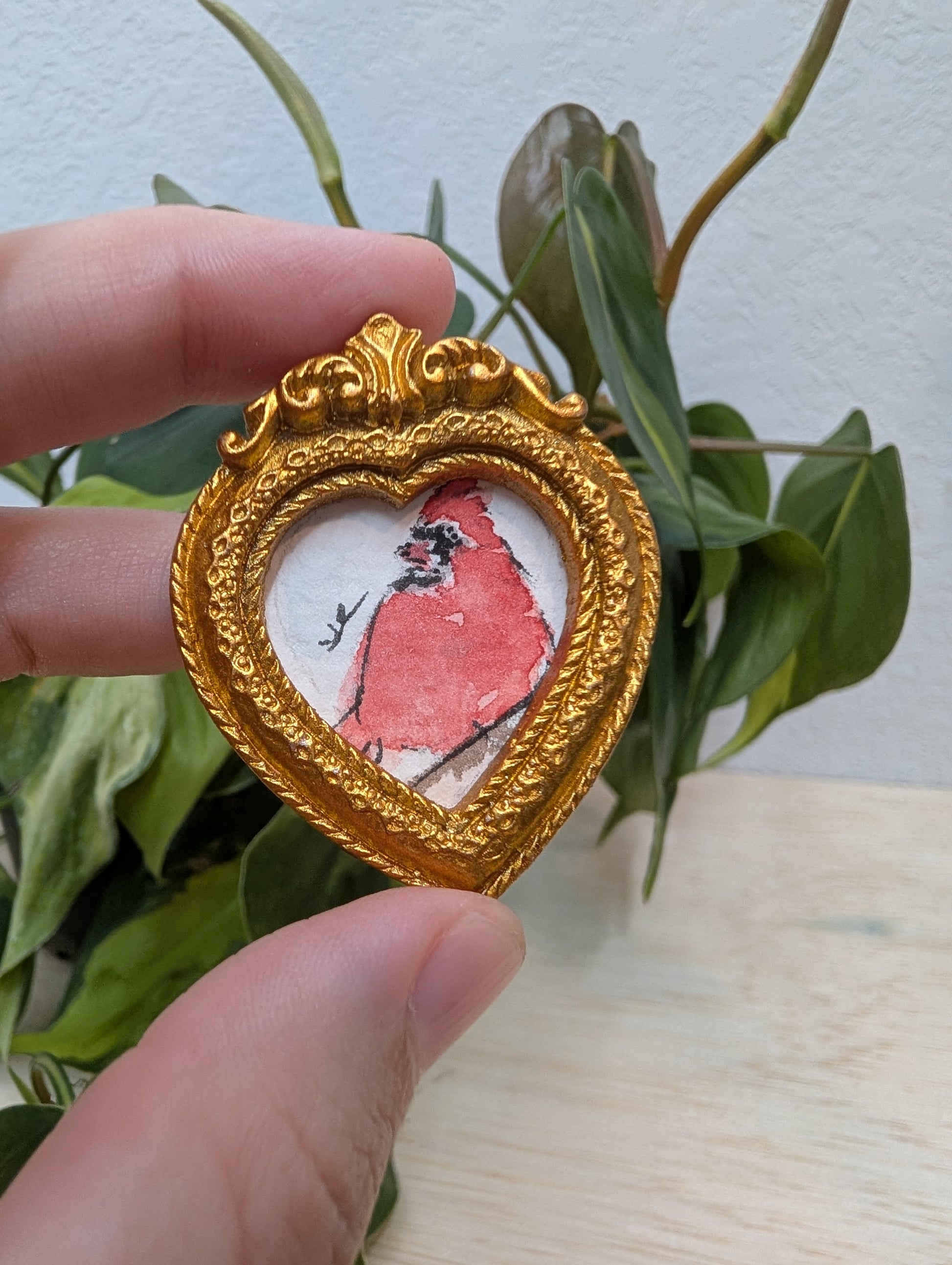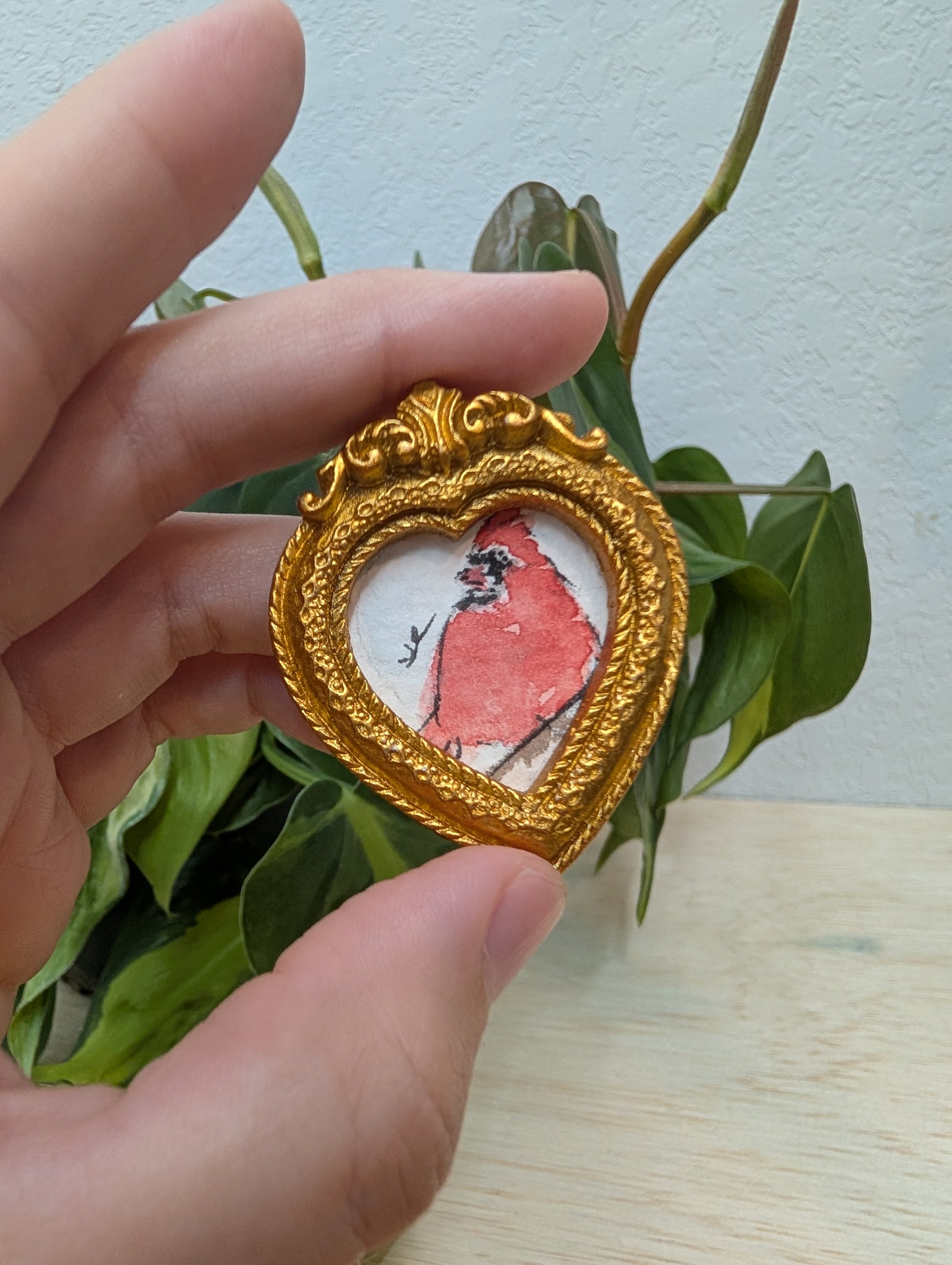 Mini Cardinal Bird Painting - Original Watercolor Art by Lora Cavallin