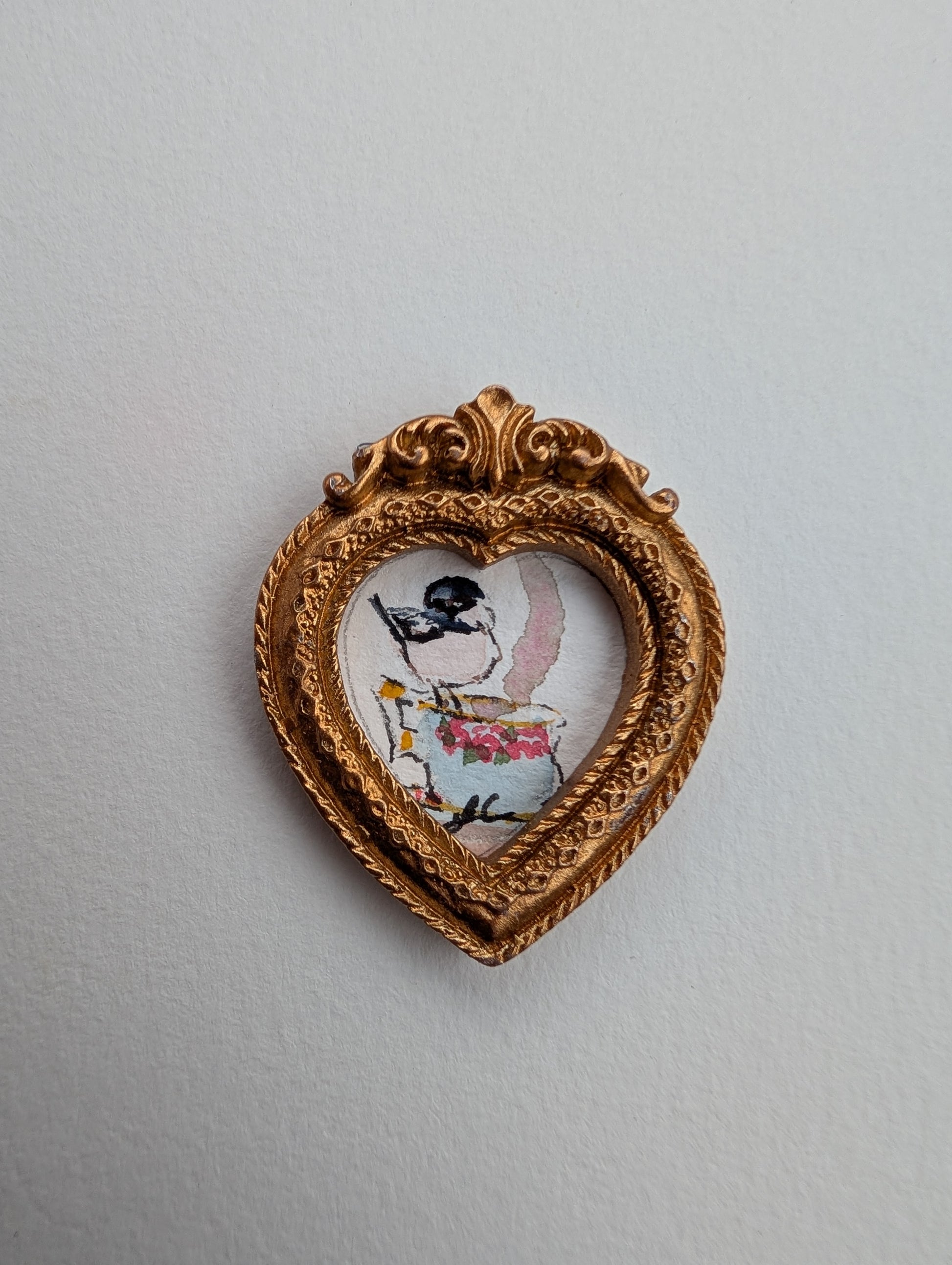 These make great gifts for any miniature enthusiast! It comes in the little gold frame, and has a tag hanger on the back.