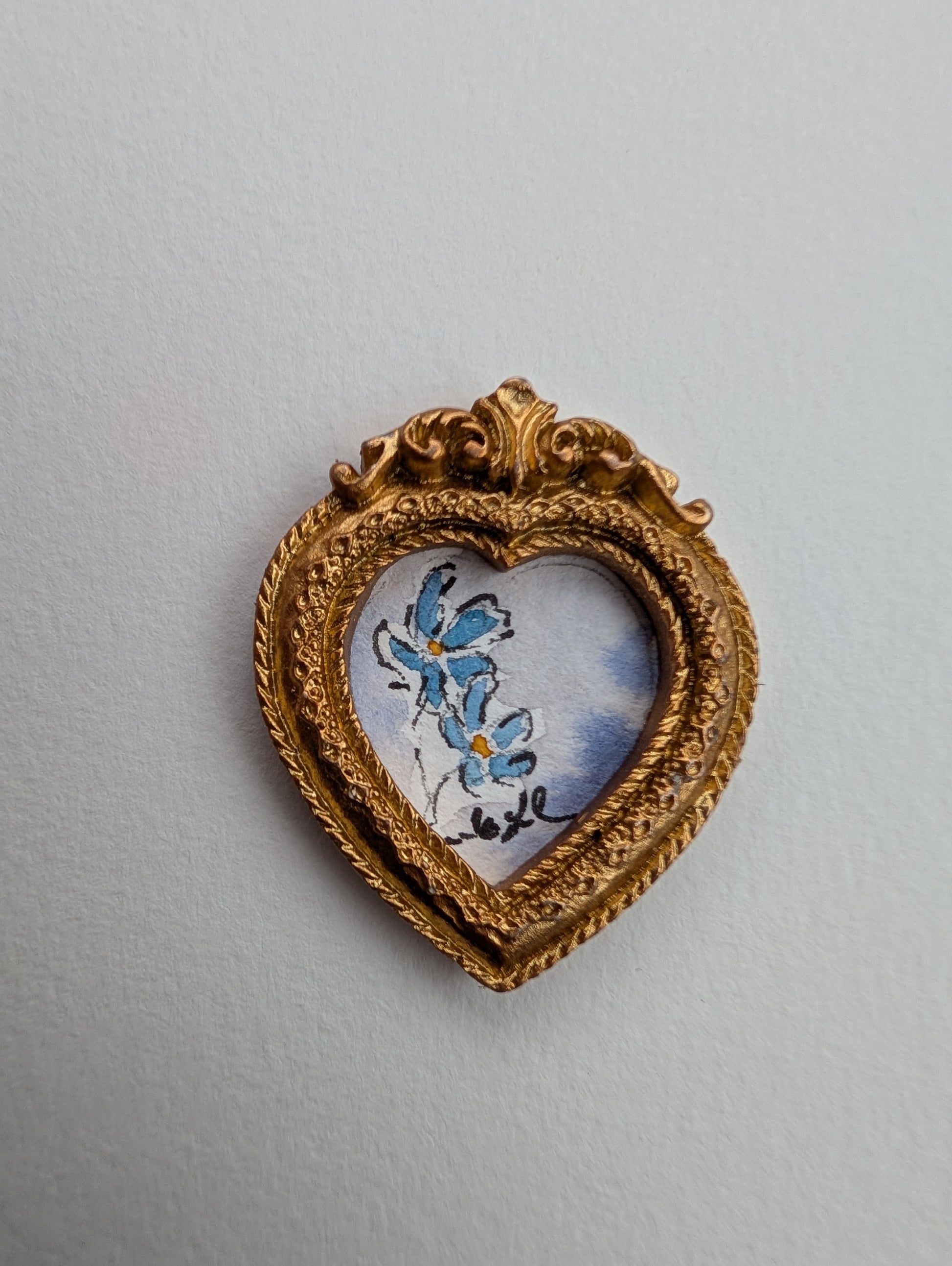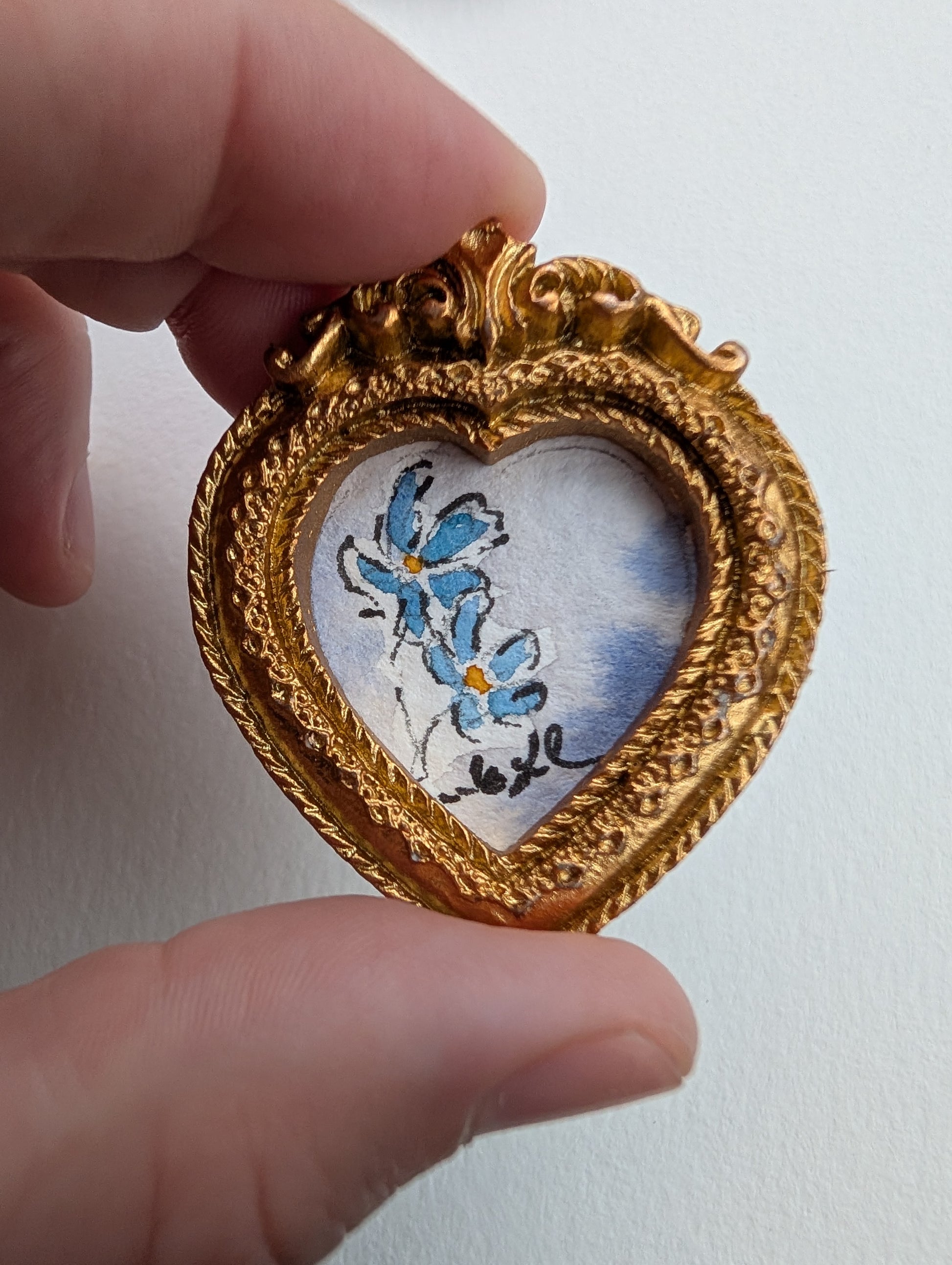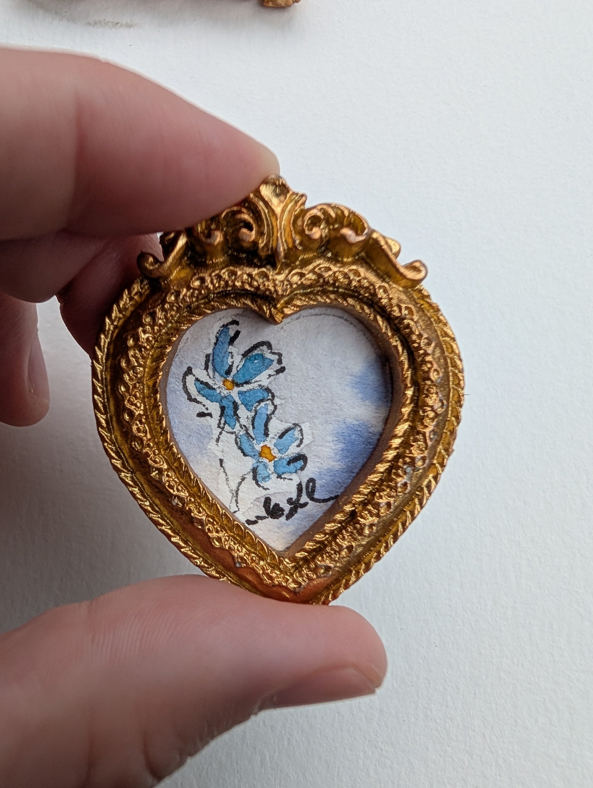 These make great gifts for any miniature enthusiast! It comes in the little gold frame, and has a tag hanger on the back.