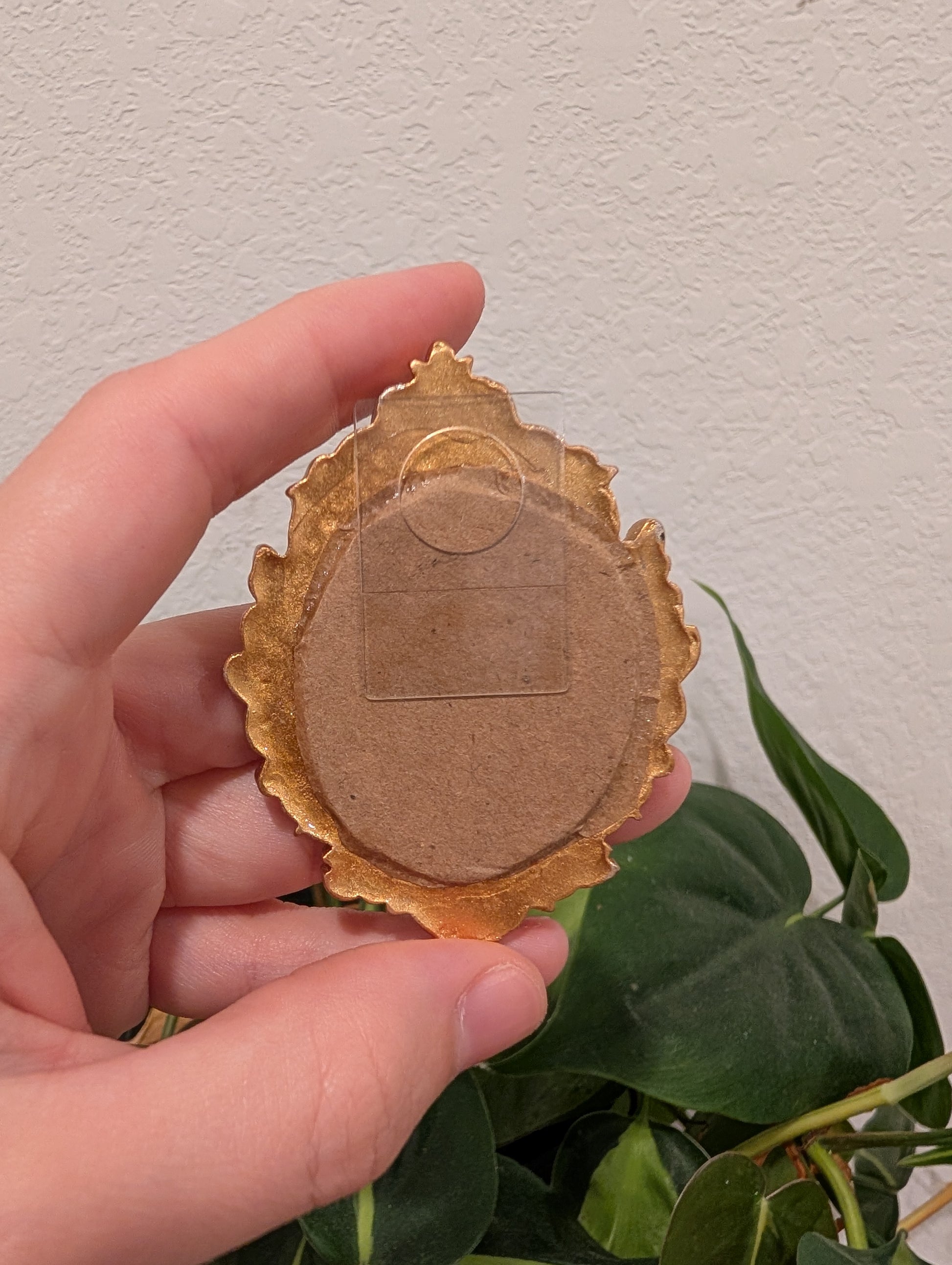 These make great gifts for any miniature enthusiast! It comes in the little gold frame, and has a tag hanger on the back.