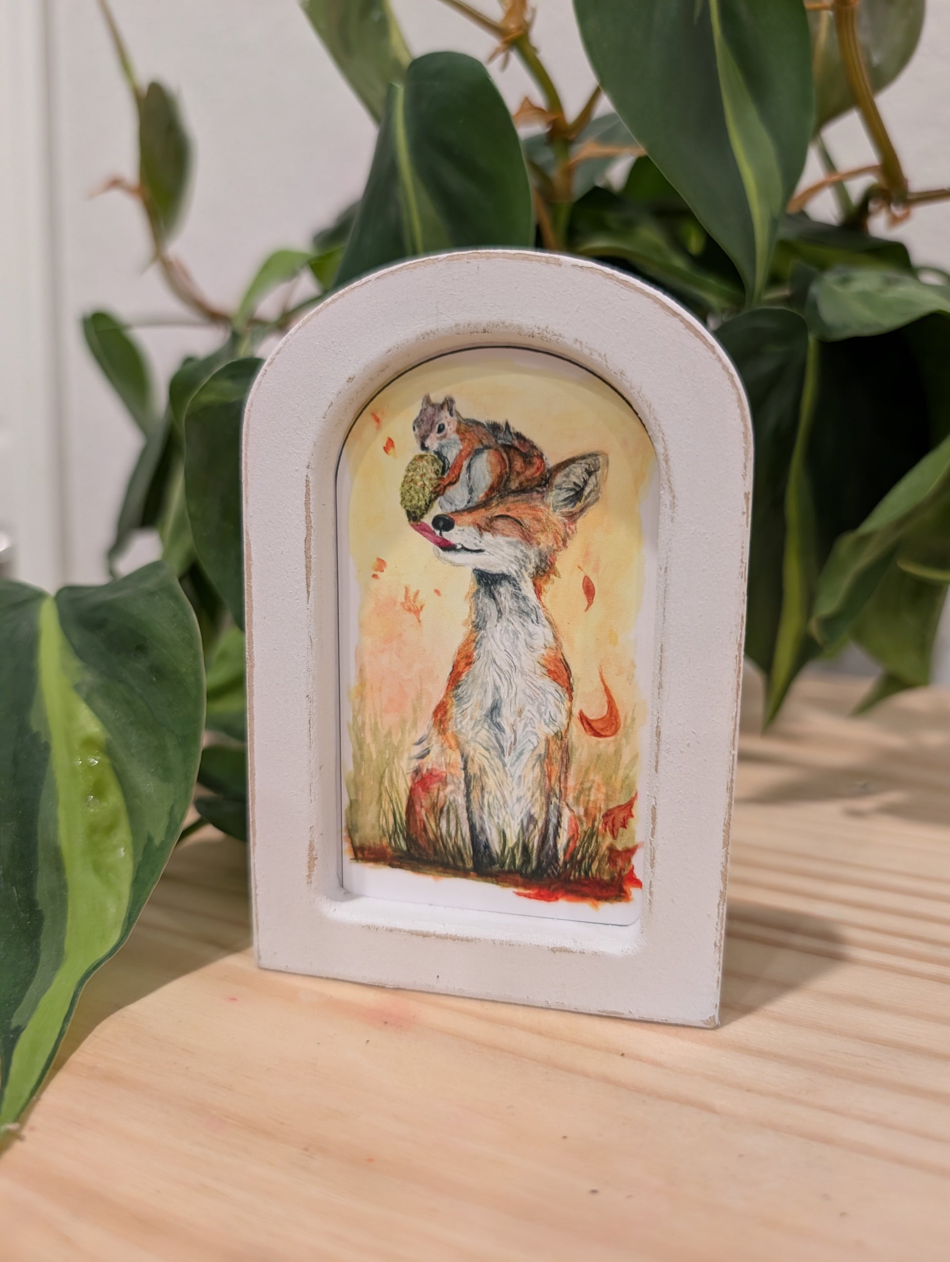 Mini Fox and Squirrel Art Print - Wood Arch Frame - Lora Cavallin Art