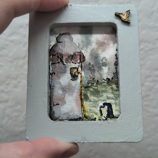 These make great gifts for any miniature enthusiast! It comes in the little wood frame, and has a tag hanger on the back.
