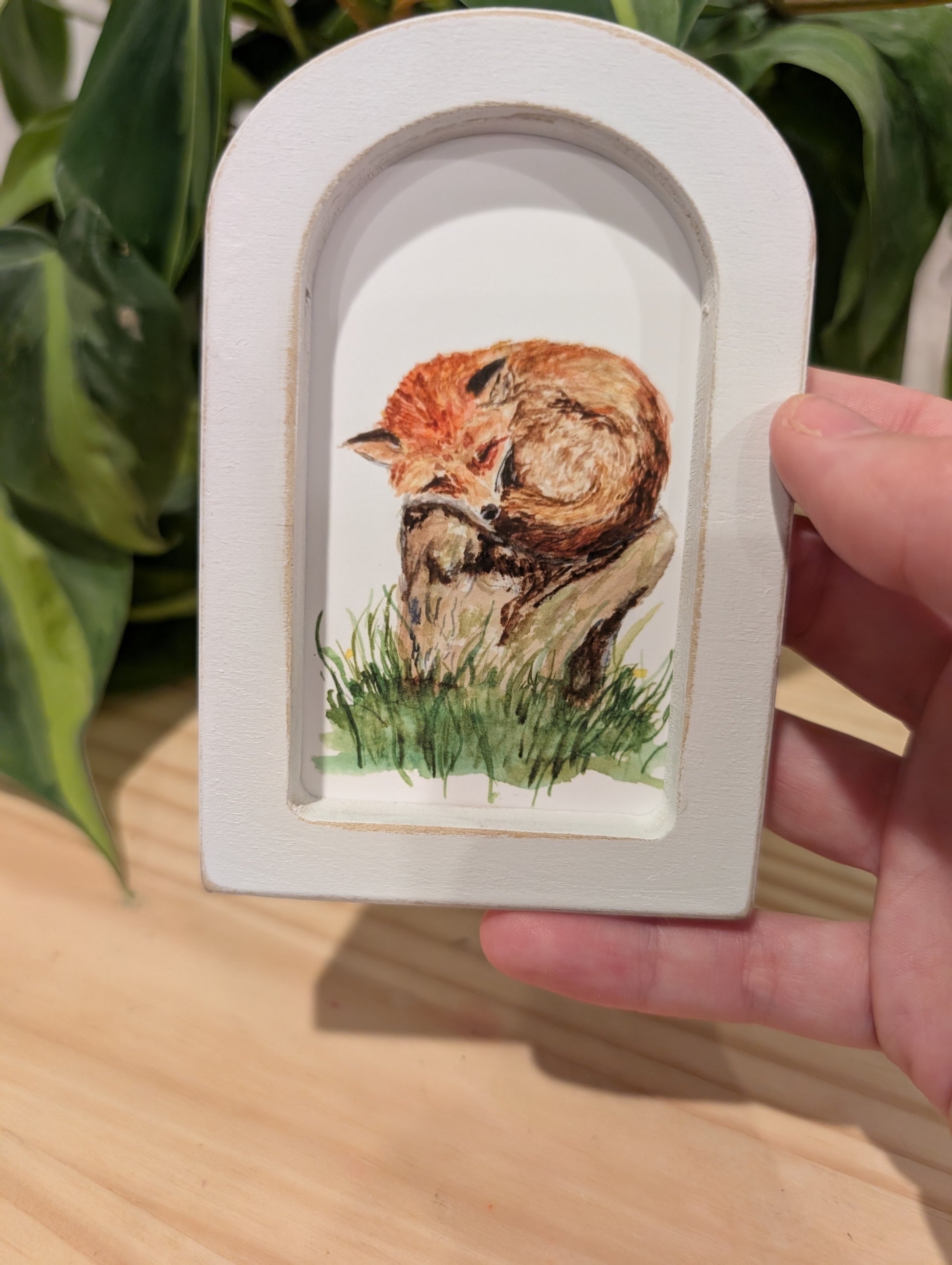 Mini Sleeping Fox Art Print - Wood Arch Frame - Lora Cavallin Art