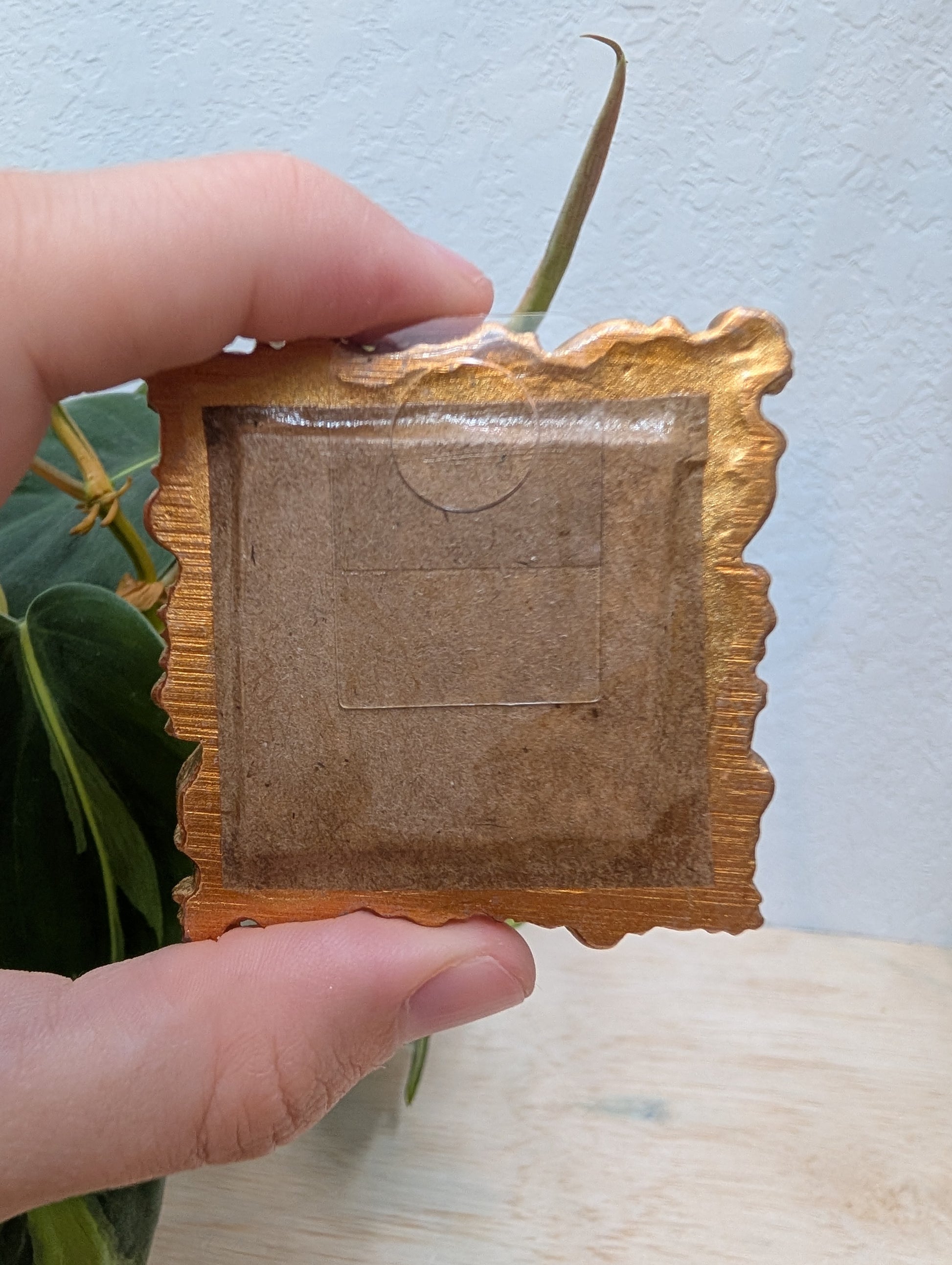 These make great gifts for any miniature enthusiast! It comes in the little gold frame, and has a tag hanger on the back.