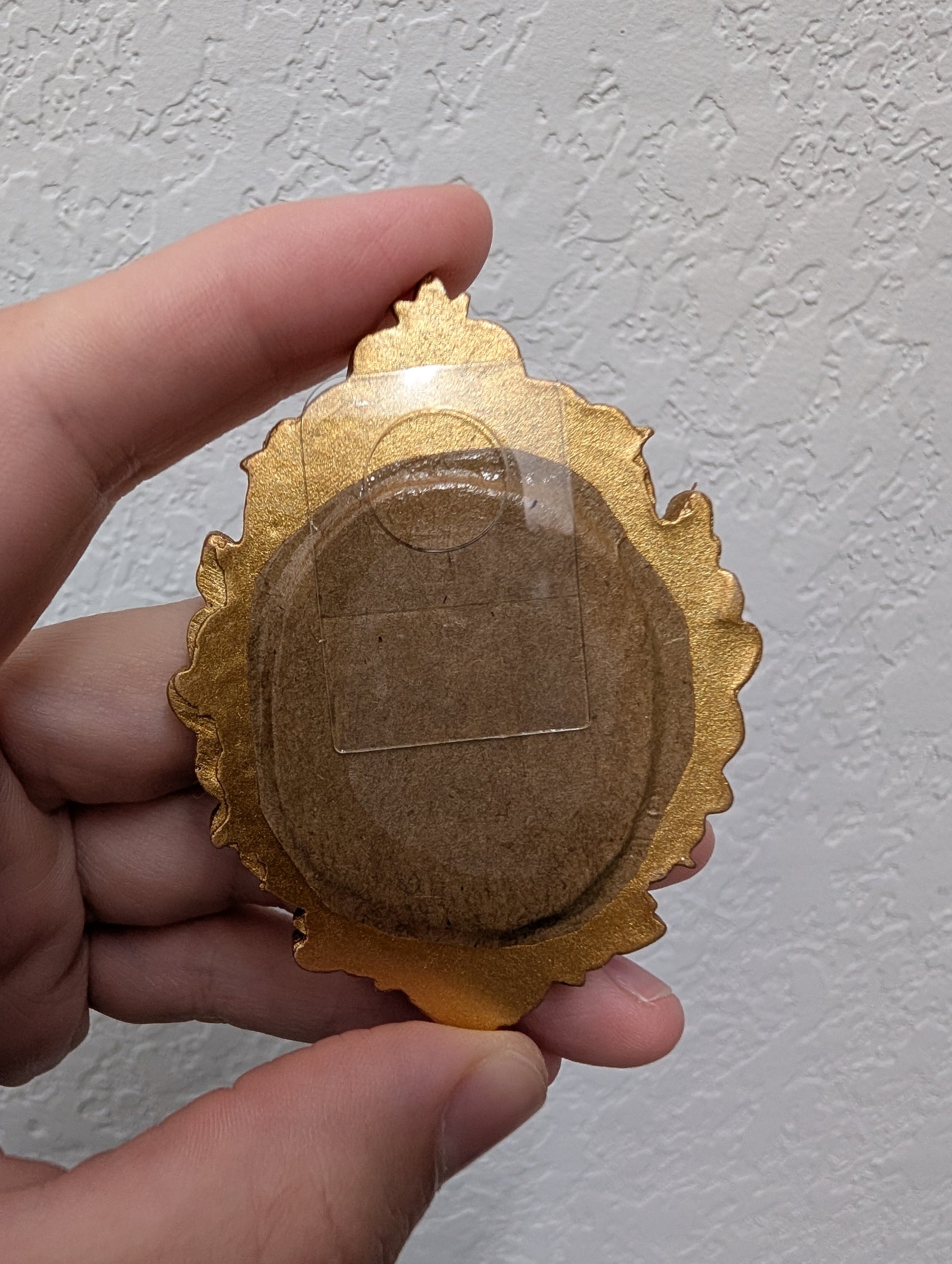 These make great gifts for any miniature enthusiast! It comes in the little gold frame, and has a tag hanger on the back.