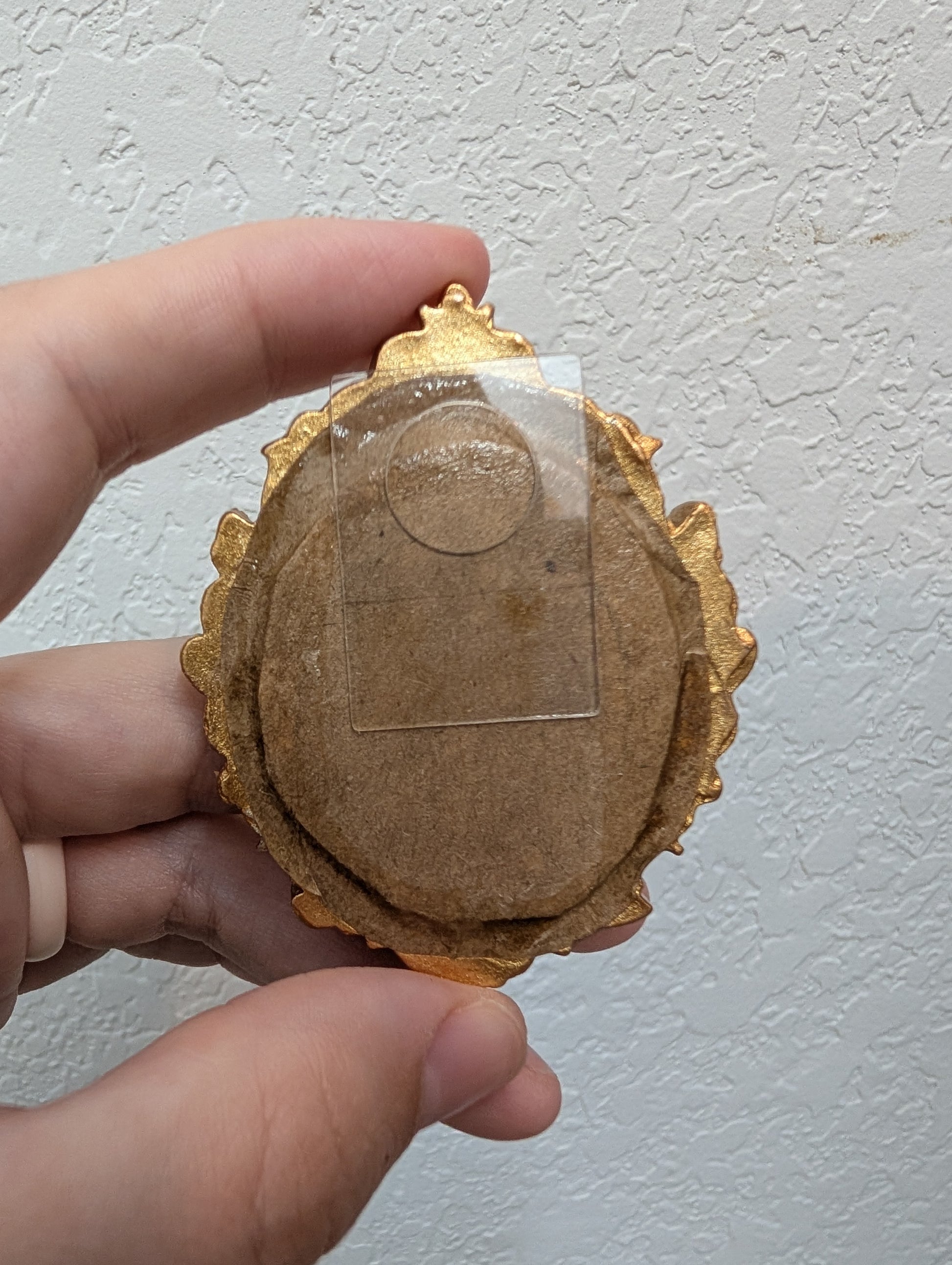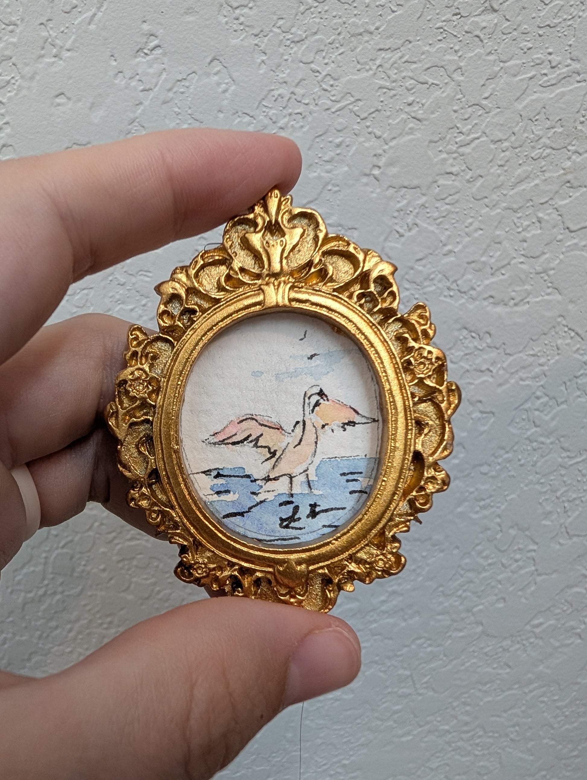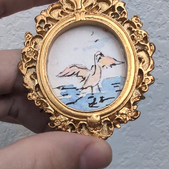 These make great gifts for any miniature enthusiast! It comes in the little gold frame, and has a tag hanger on the back.