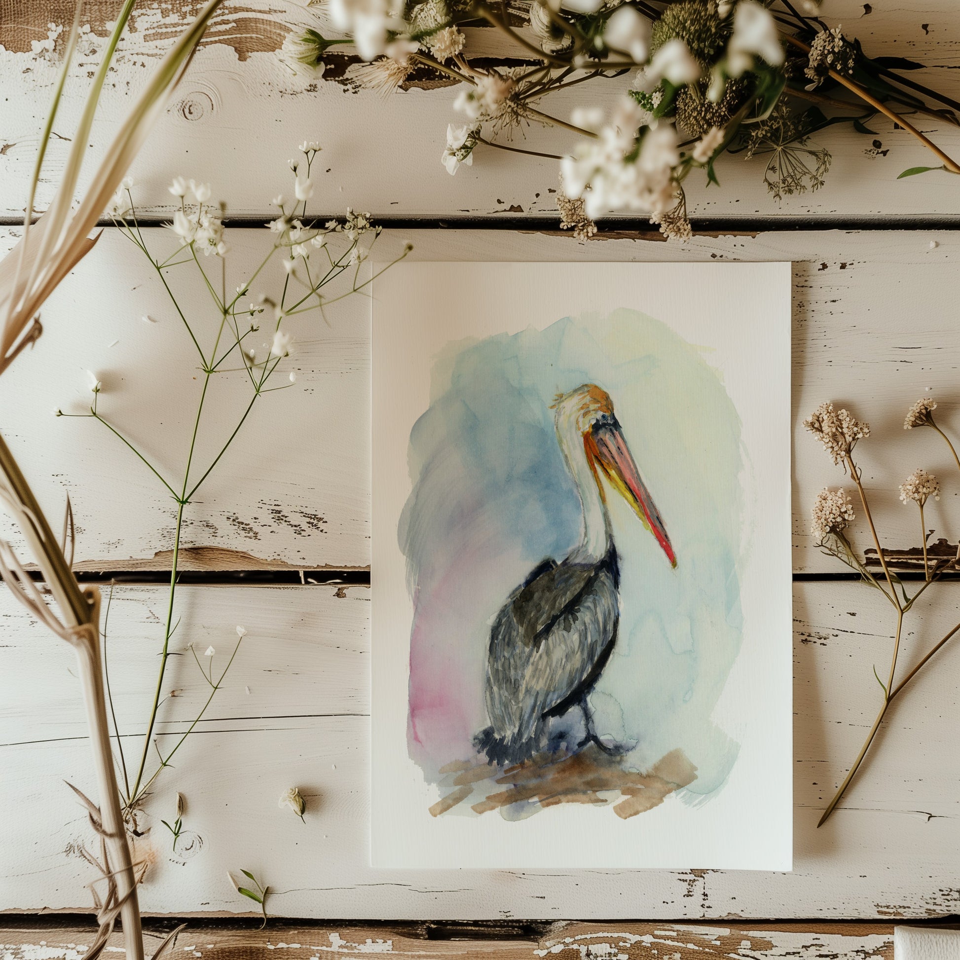Introducing the "Pelican's Pastel Paradise" Watercolor Print – a splash of coastal calm for your walls! Created with love on premium 230gsm paper, this artwork captures the serene beauty of seaside living. It's affordable, brimming with coastal charm, and guaranteed to transport you to sandy shores with every glance. Embrace the tranquil vibes and let this graceful pelican be your daily reminder of the peaceful allure of the ocean. 🌊🎨🦩
