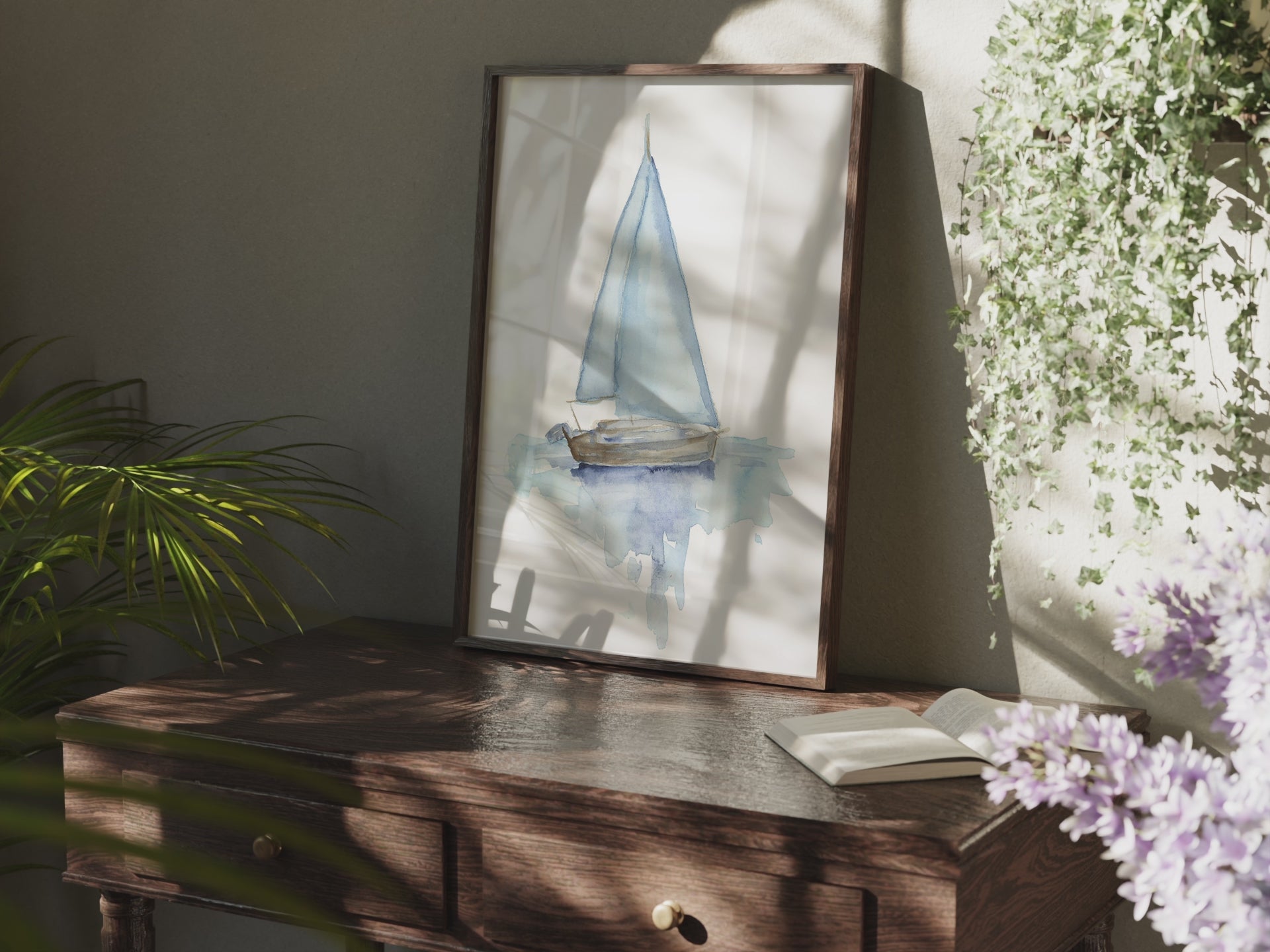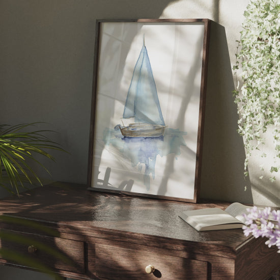 Lora Cavallin Art's "Sail boat" print will add a touch of peacefulness to your home. This beautiful watercolor painting features a calm sailboat, sold without a frame. Perfect for lovers of the sea and art.