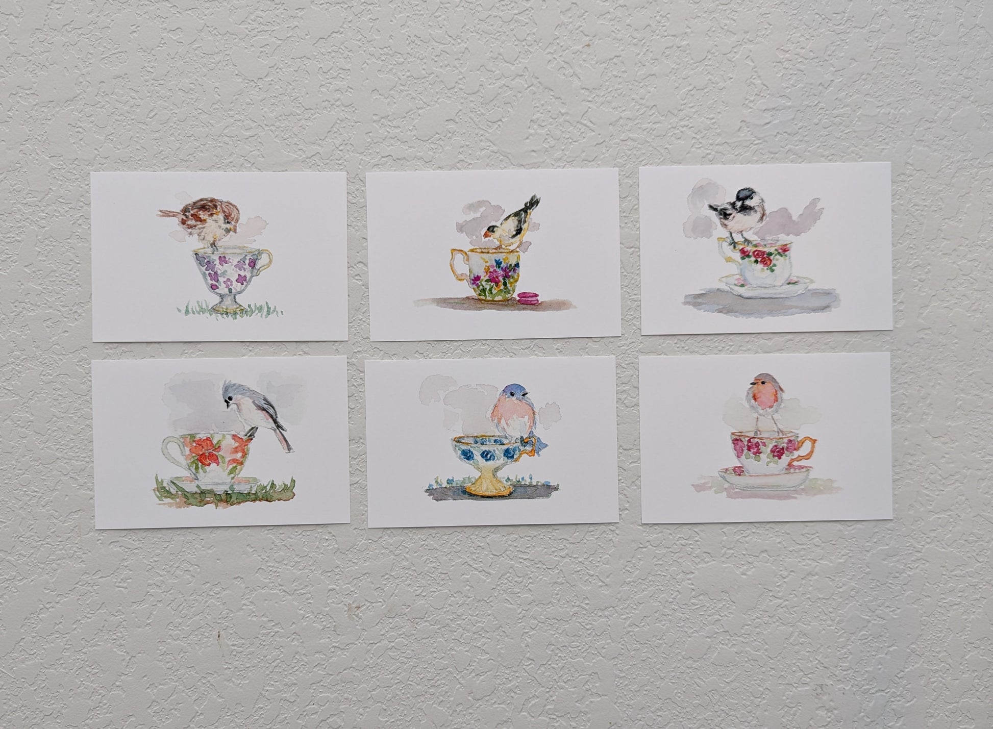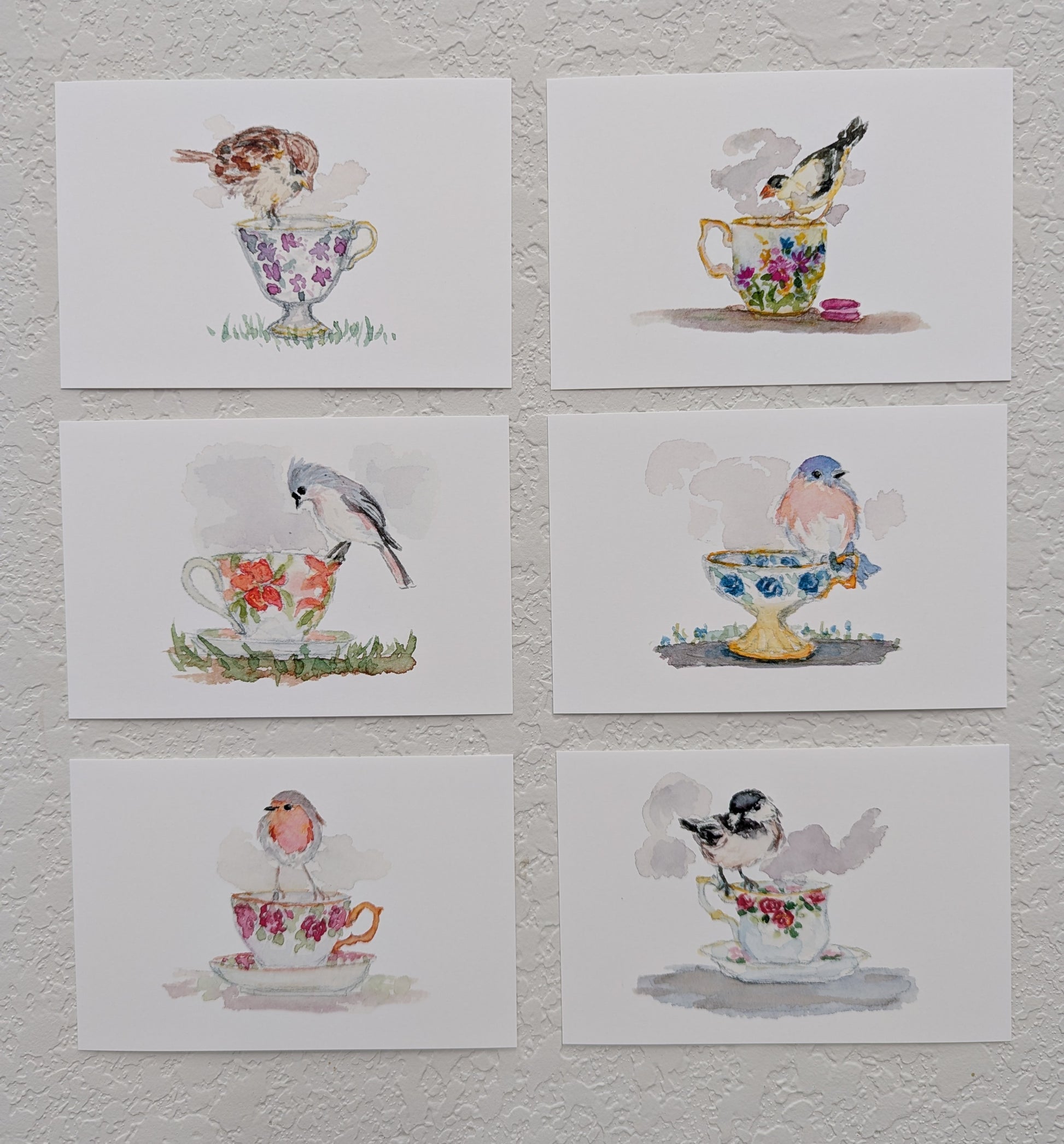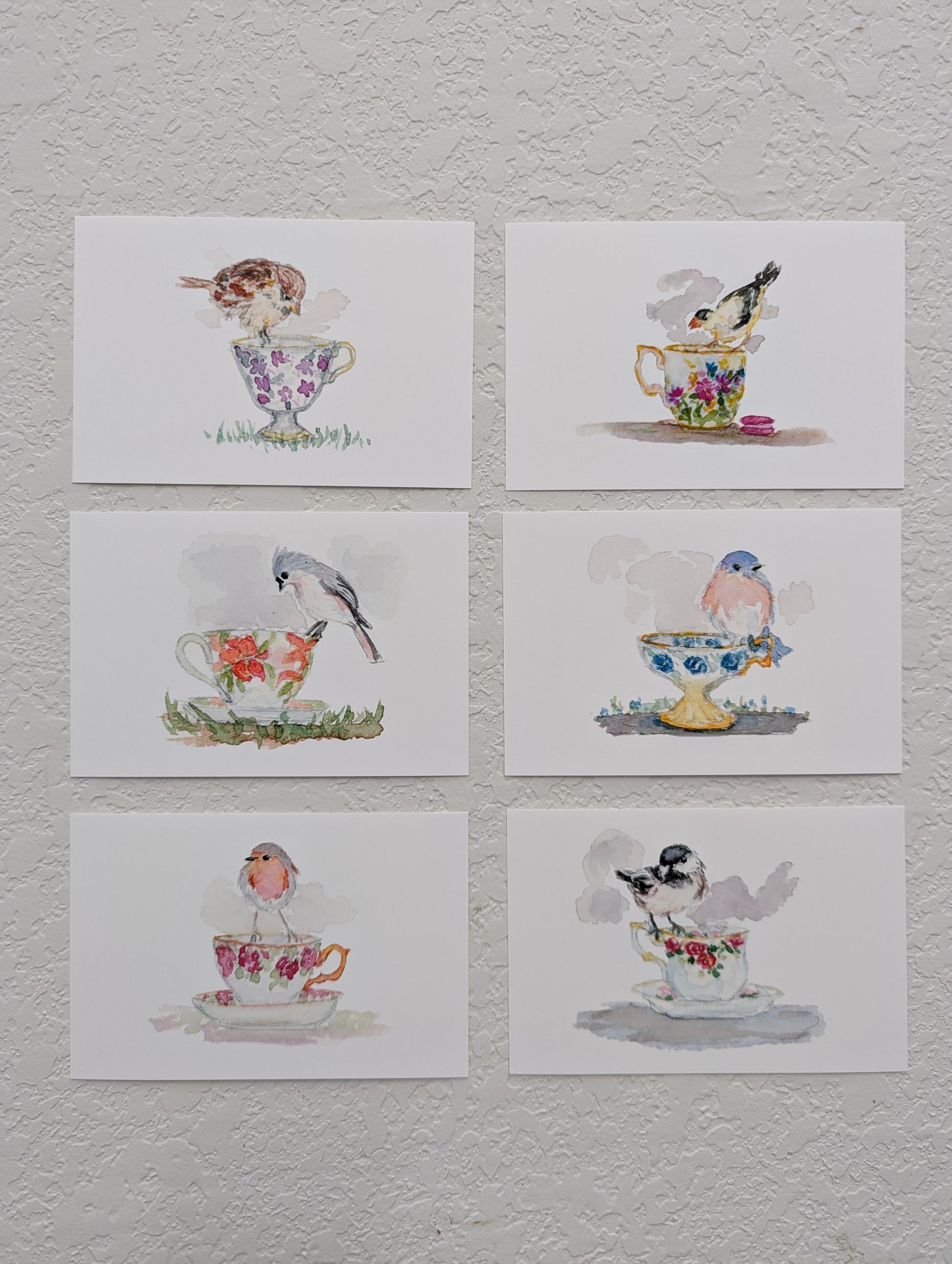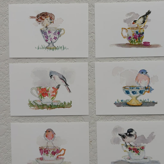 Group of Six Bird and Teacup Art Prints