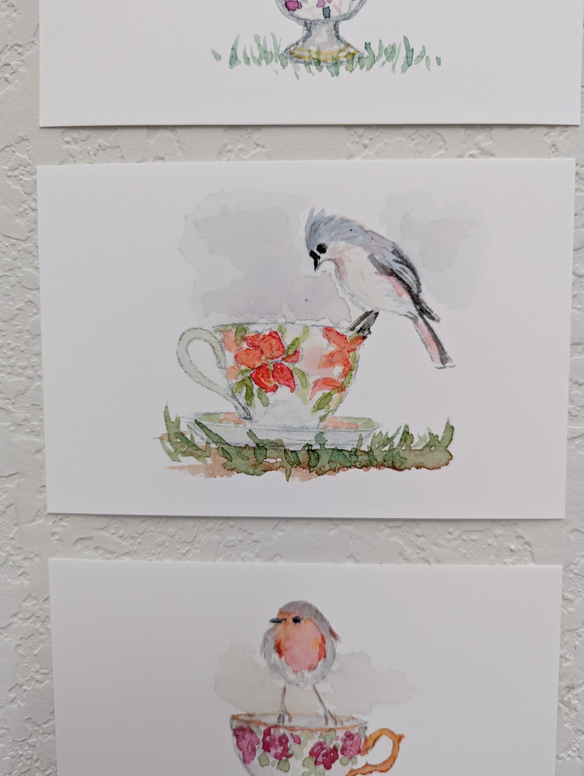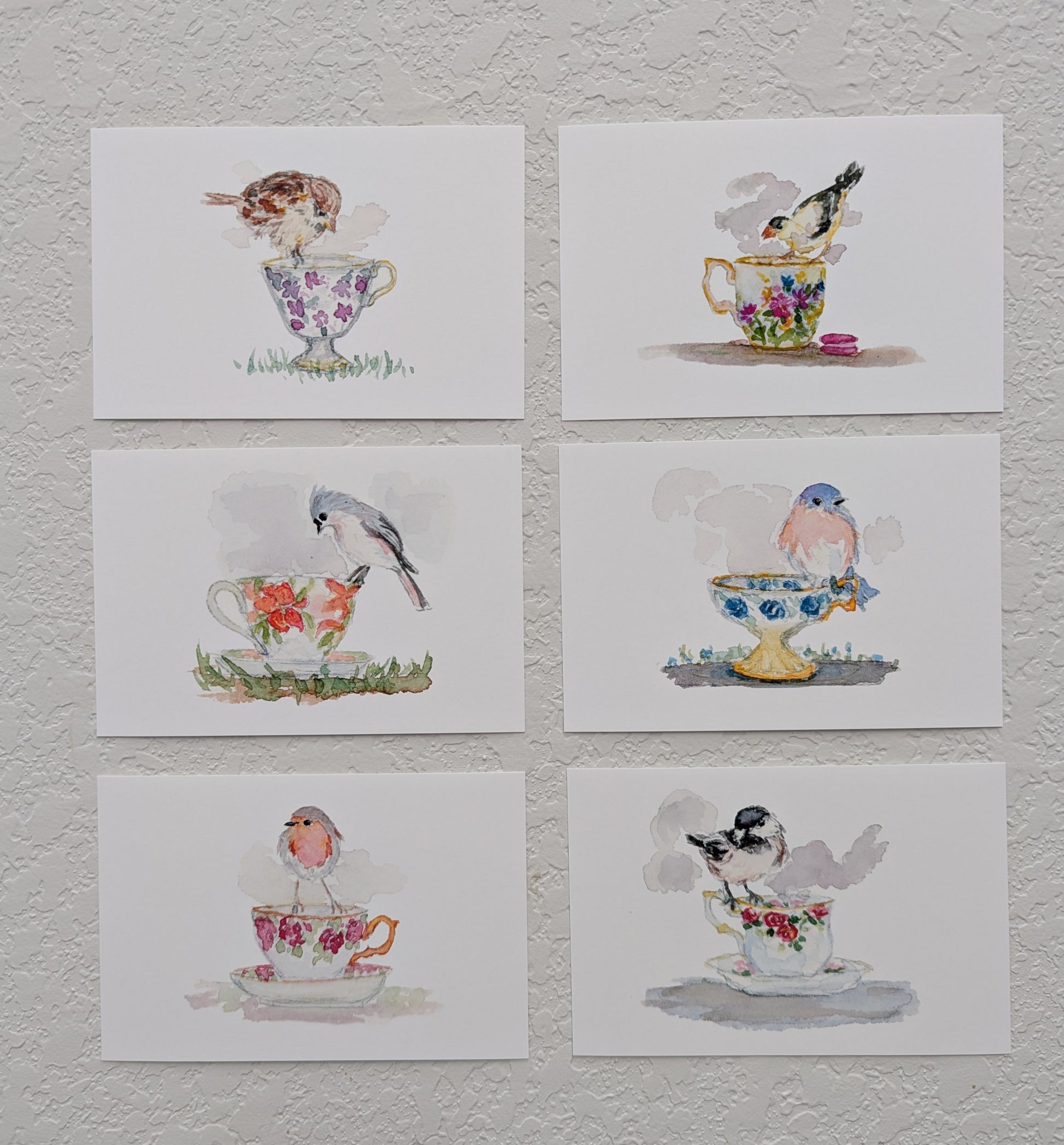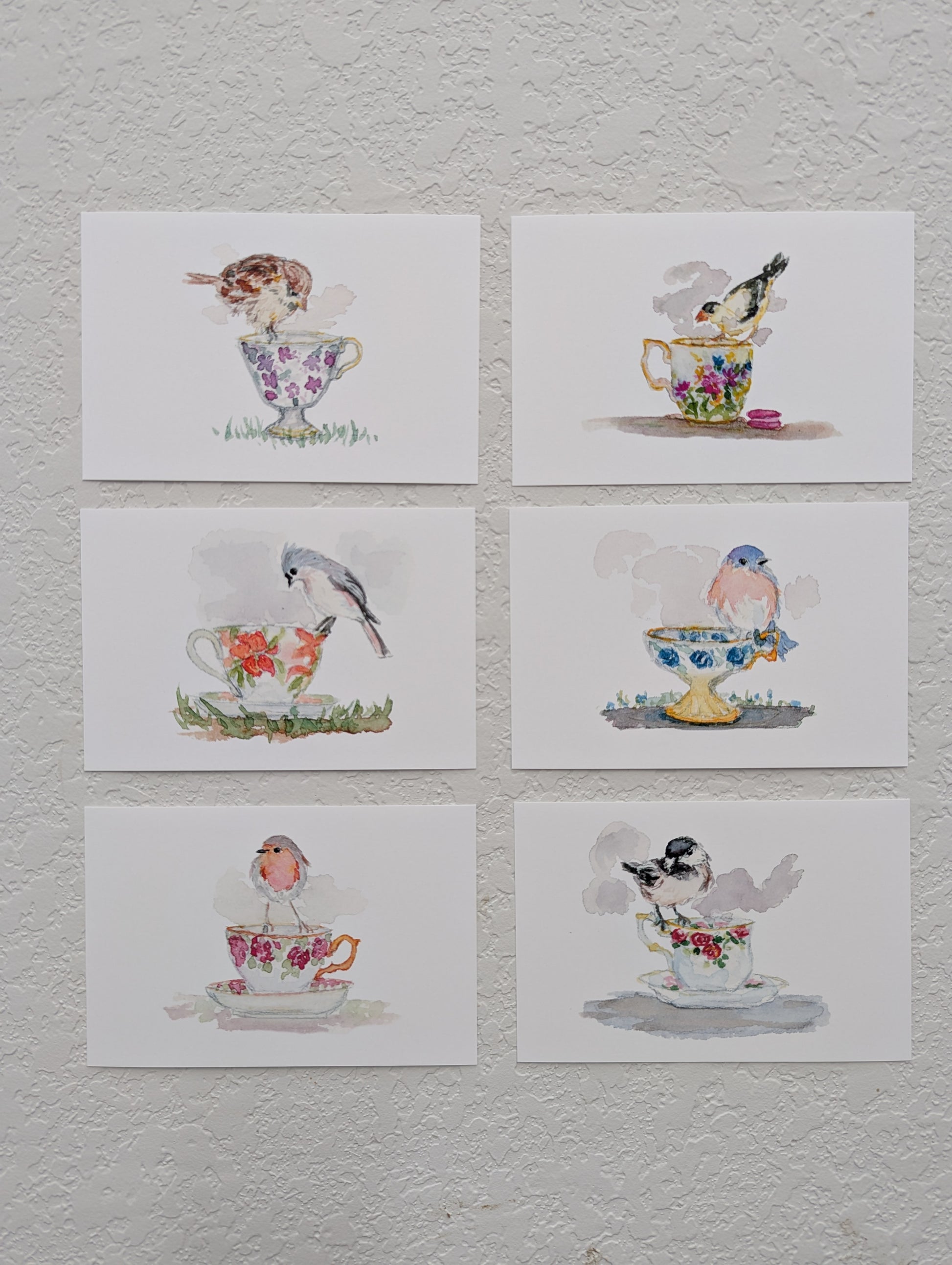 Group of Six Bird and Teacup Art Prints