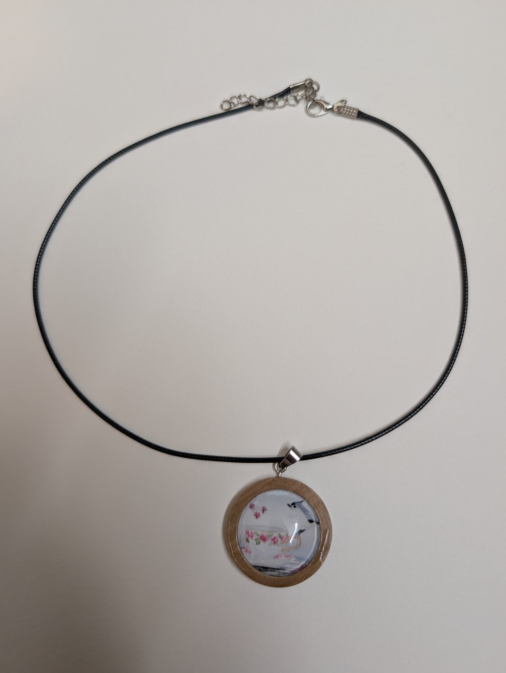 This original painting was painted using watercolor paint on paper. This print version is printed on high quality paper, and is glued into the pendant under a glass dome.